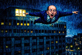 A few brief moments before America's foremost fascist asshole jumps to his death--yeah, it's a total fantasy. Or maybe just wishful thinking.