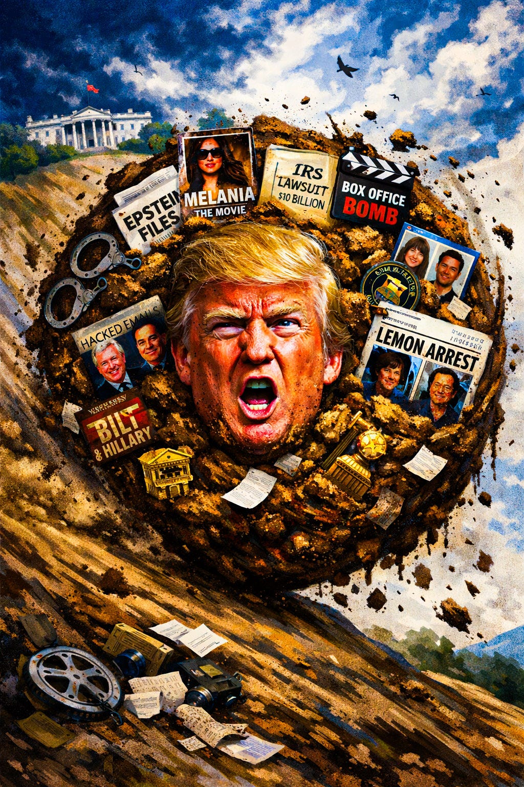 Put all of this shit together and a pattern emerges, less ideology than physics. Lawsuits framed as martyrdom. Transparency staged as endurance theater. Cultural products marketed as movements and received as cultural garbage. Journalism depicted as religious harassment. Our American institutions are not collapsing; they’re being leaned on until they creak, then blamed for the noise. The Dumpster’s personal brand is not expanding; it’s shedding mass and pretending the loss is momentum.