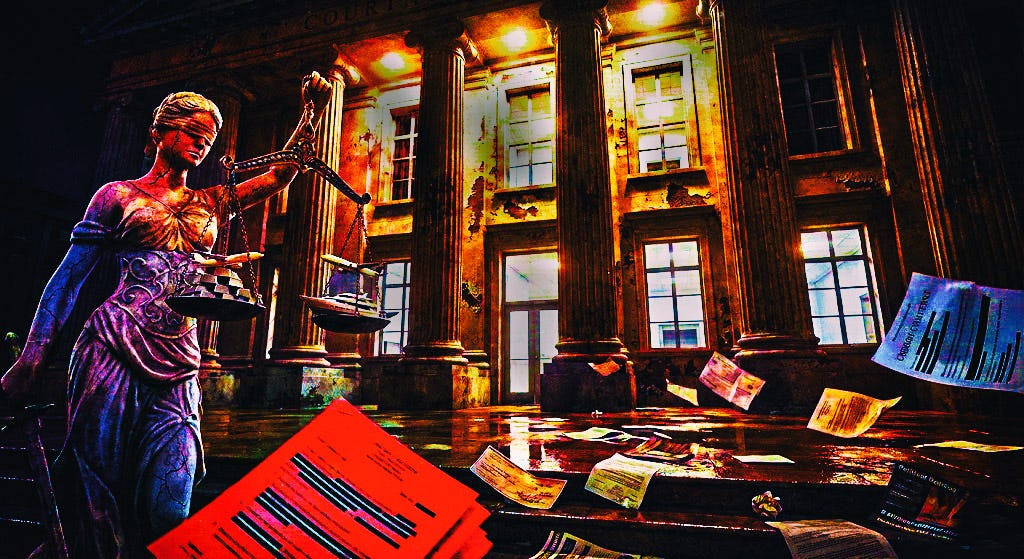 Political theory has a word for that moment: interregnum. It’s the interval between orders, when the old authority no longer commands belief and the new one has not yet arrived. The law remains printed, the buildings remain staffed, the seals remain embossed. What’s gone is the conviction that the system is capable of properly regulating itself—particularly when the defendants appear to be underwriting the courthouse.